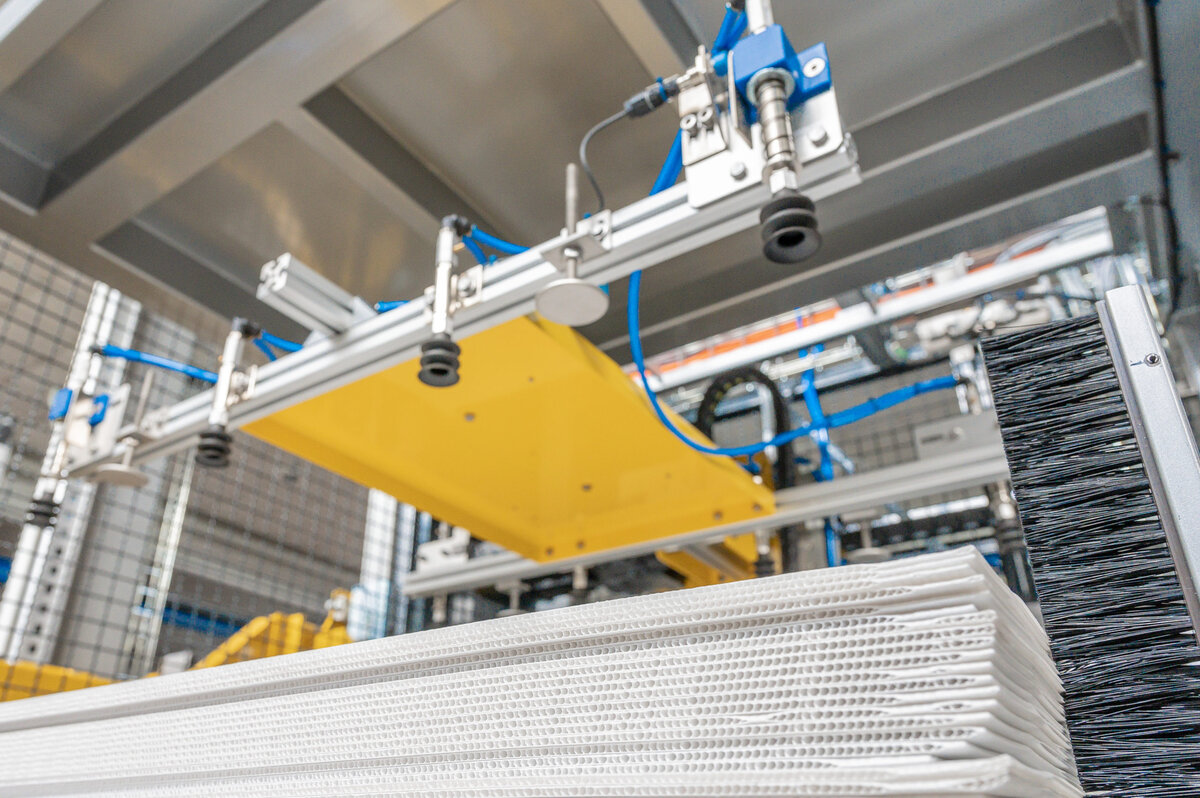 Meypack palletisers and depalletisers work in layers, which is a particularly low-wear and low-maintenance process covering all performance ranges.